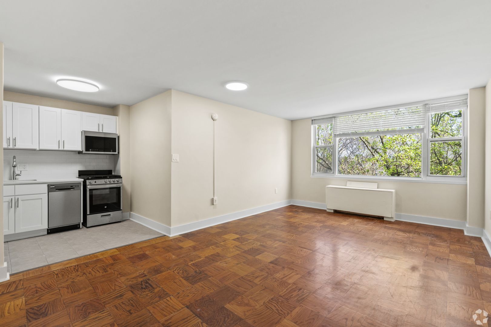 Enjoy city living at its finest in this bright top-floor studio at Park East Apartments. This open and efficiently designed space offers a comfortable living/sleeping area with abundant natural light from large windows, creating a warm and inviting atmosphere.